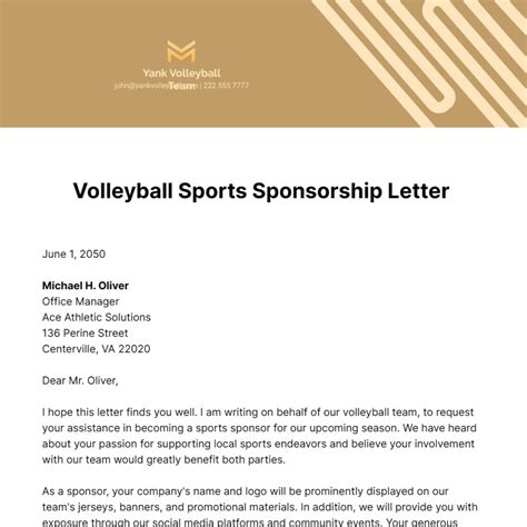 Download SAMPLE VOLLEYBALL SPONSORSHIP LETTER Doc